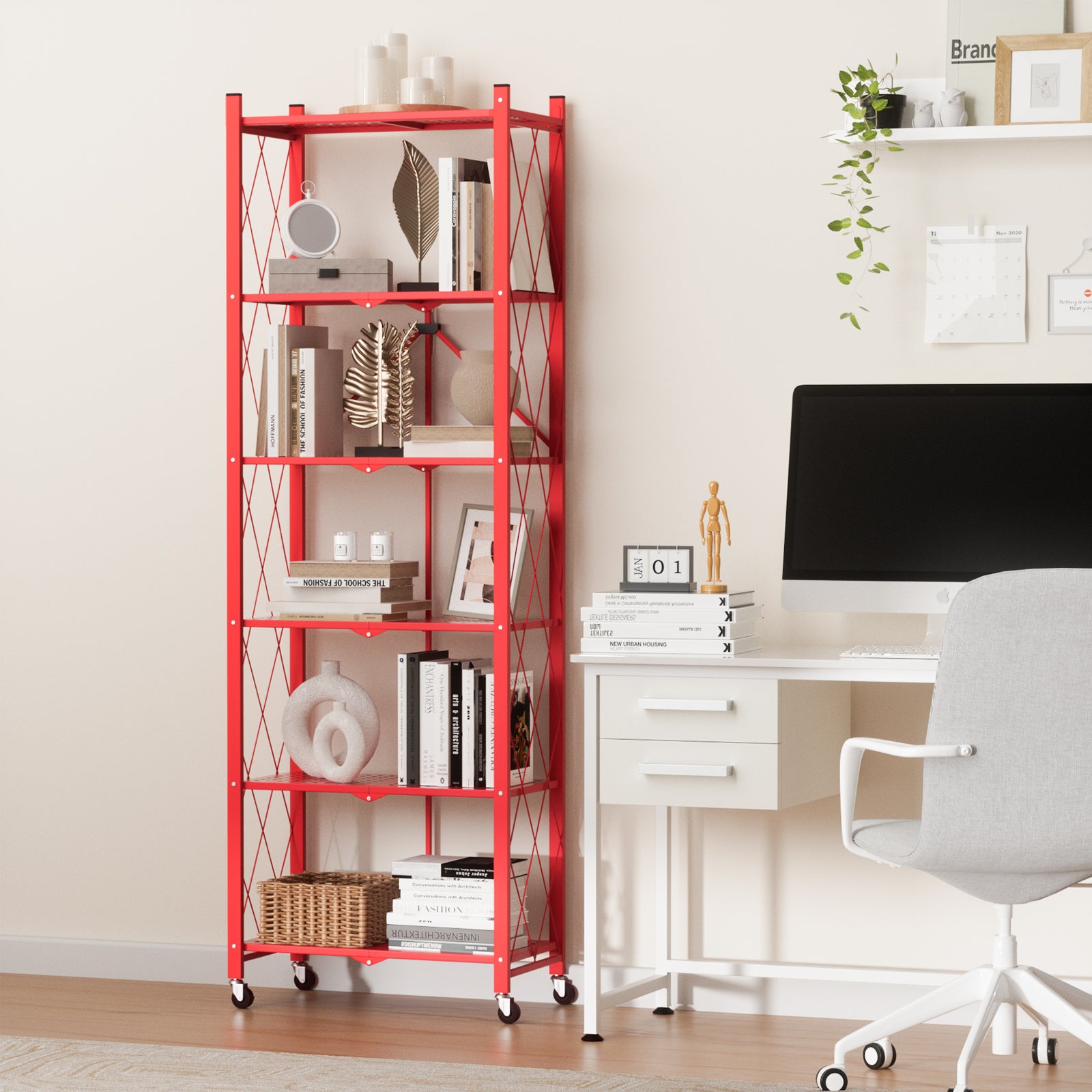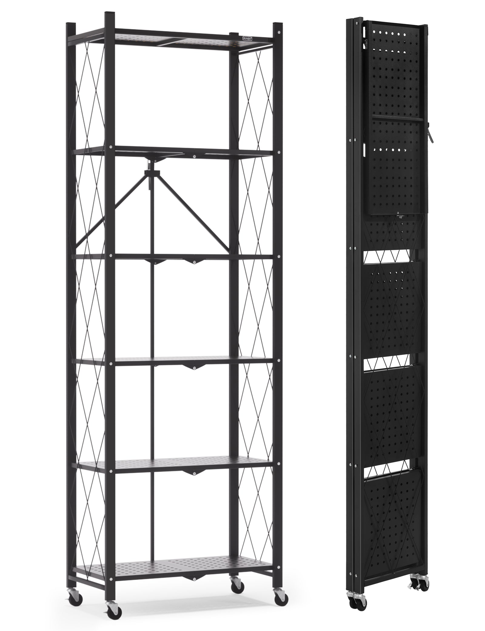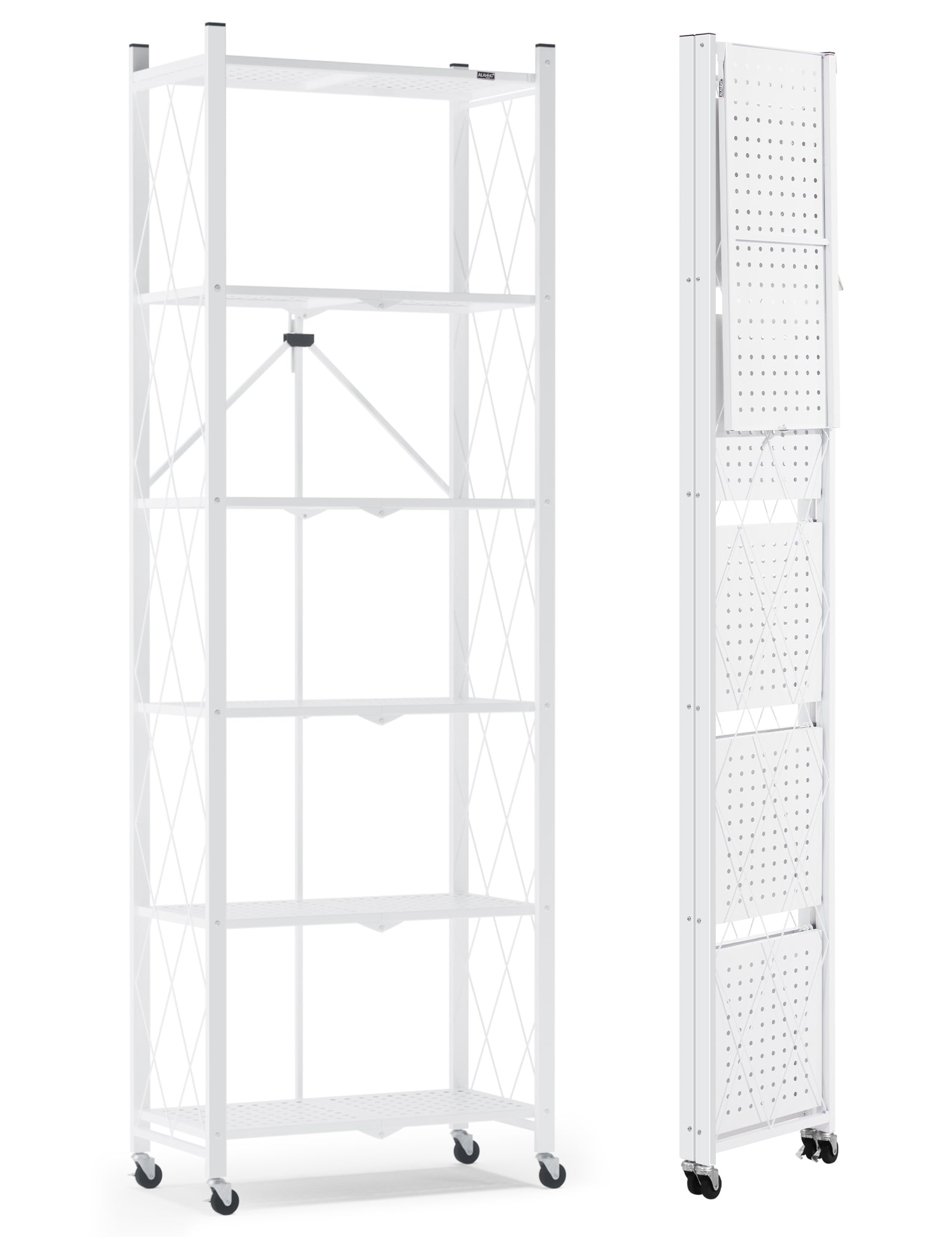 6-tier No Assembly Metal Folding Bookshelves Rack On Wheels For Office, Pantry, Kitchen, Living Room, Bedroom, Classroom, Standing Shelf,4 Colors