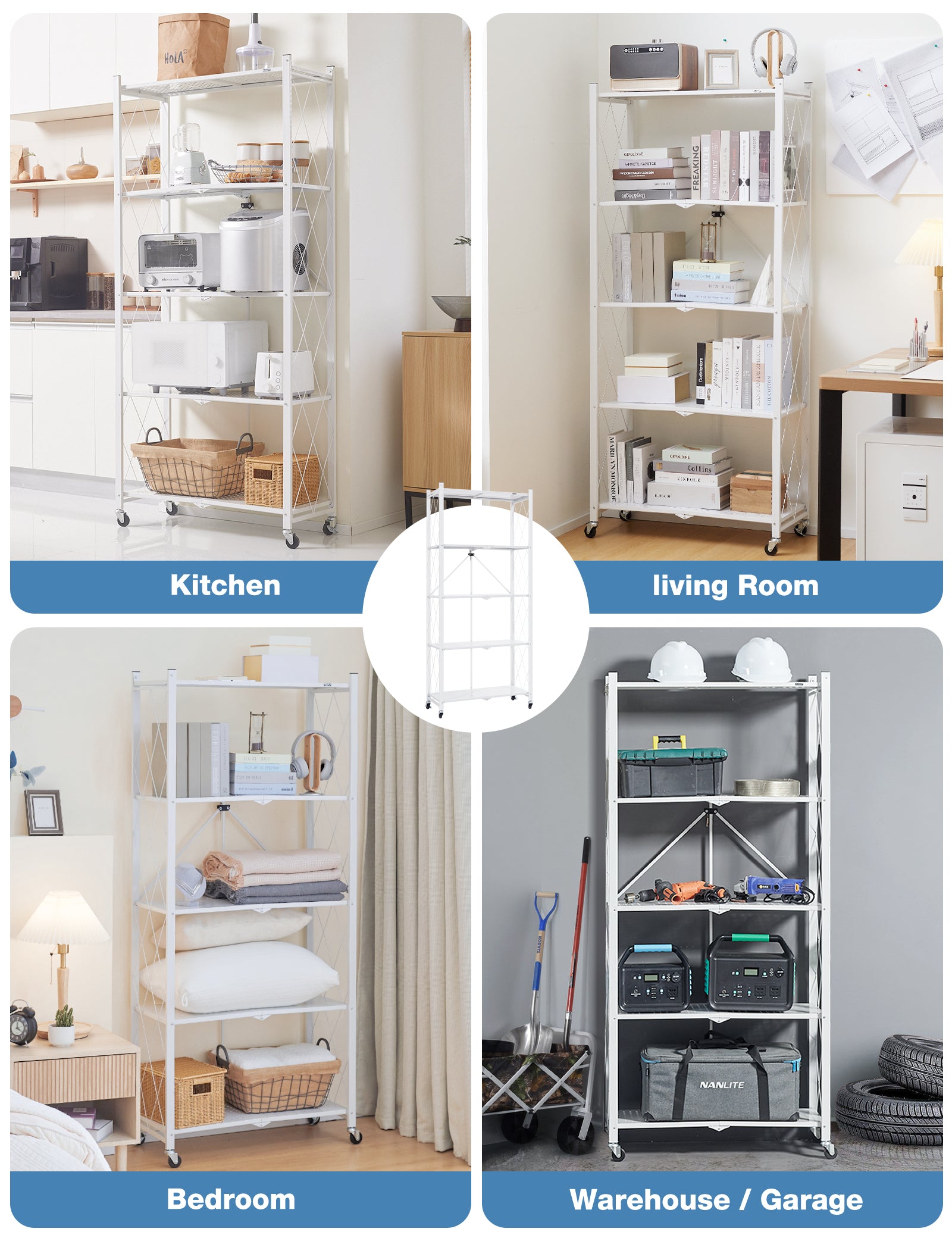 ALANNG 70.7" H Metal Storage Shelves, 5 Tier Folding Shelf on Wheels, Heavy Duty, No Assembly, Rolling, Collapsible Rack Unit for Kitchen, Basement, Pantry,4 Colors