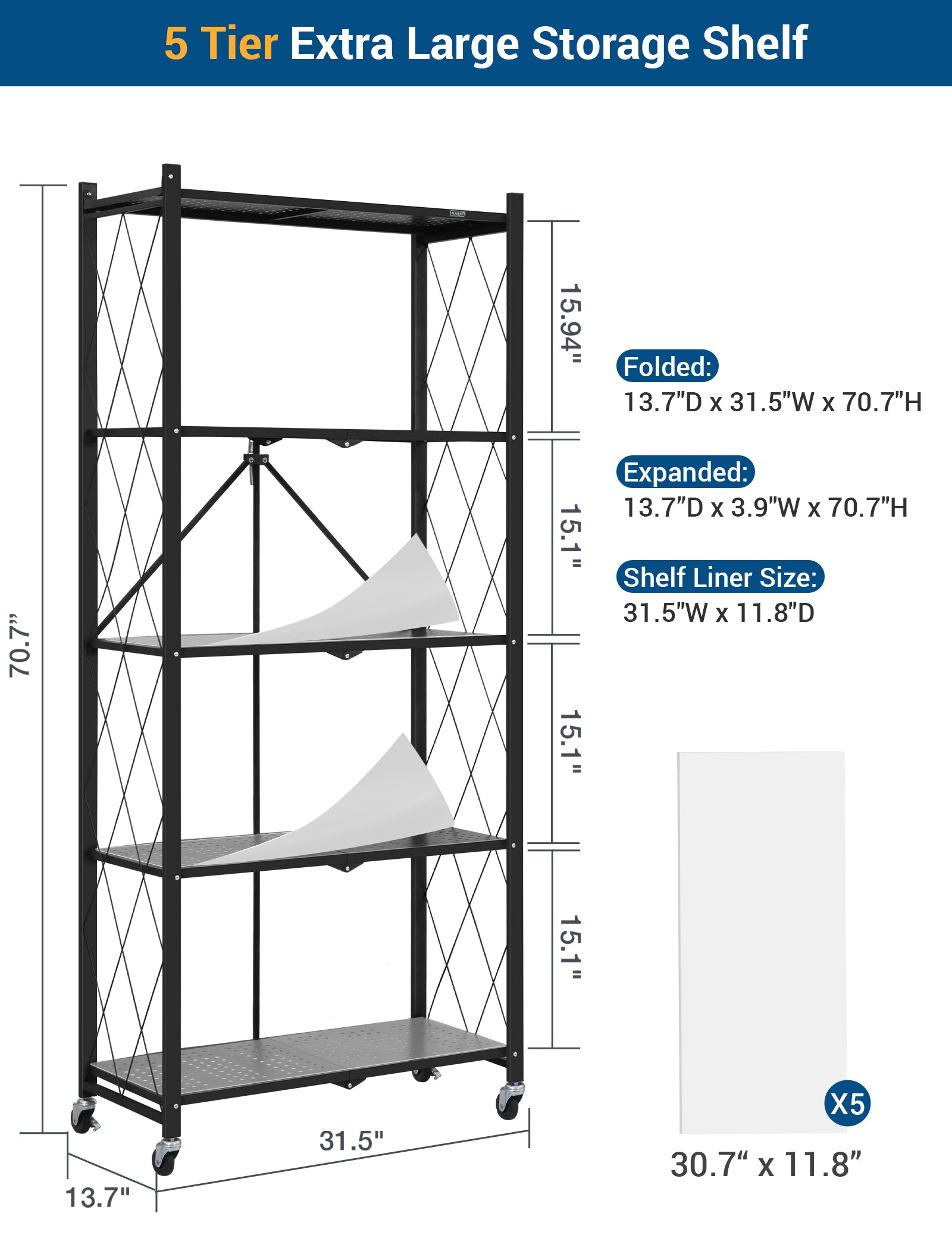 • [1-Min Tool-Free Assembly] No bolts, no tools, no frustration! Unfolds from 3.9-inch flat pack to 70.7" shelving in 60 seconds - 10x faster than traditional shelves. Perfect for last-minute garage cleanups, holiday guest prep, or emergency storm supplies organization.